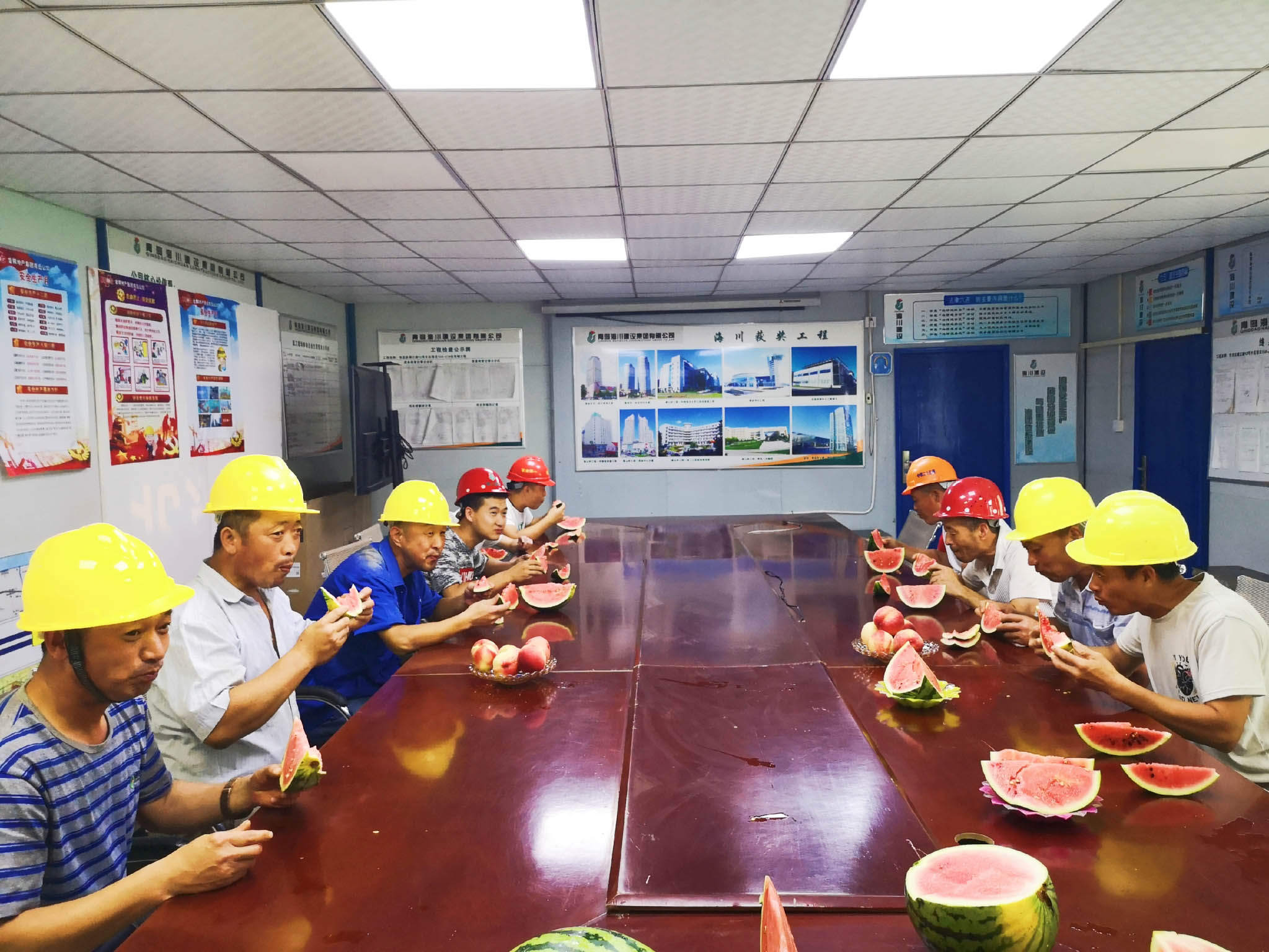 在這個酷暑季節(jié)里,為更好地保障廣大職工高溫天氣安全生產(chǎn)和防暑降溫工作,有效改善暑期高溫一線職工生產(chǎn)生活條件,切實(shí)維護(hù)廣大職工的職業(yè)安全與健康權(quán)益,深化工會“四季服務(wù)”工作品牌。青島海川建設(shè)集團(tuán)工會開展了“促安全、保健康”為主要內(nèi)容的“送清涼”走訪慰問活動,為一線職工們帶來一絲愜意、一縷清涼。